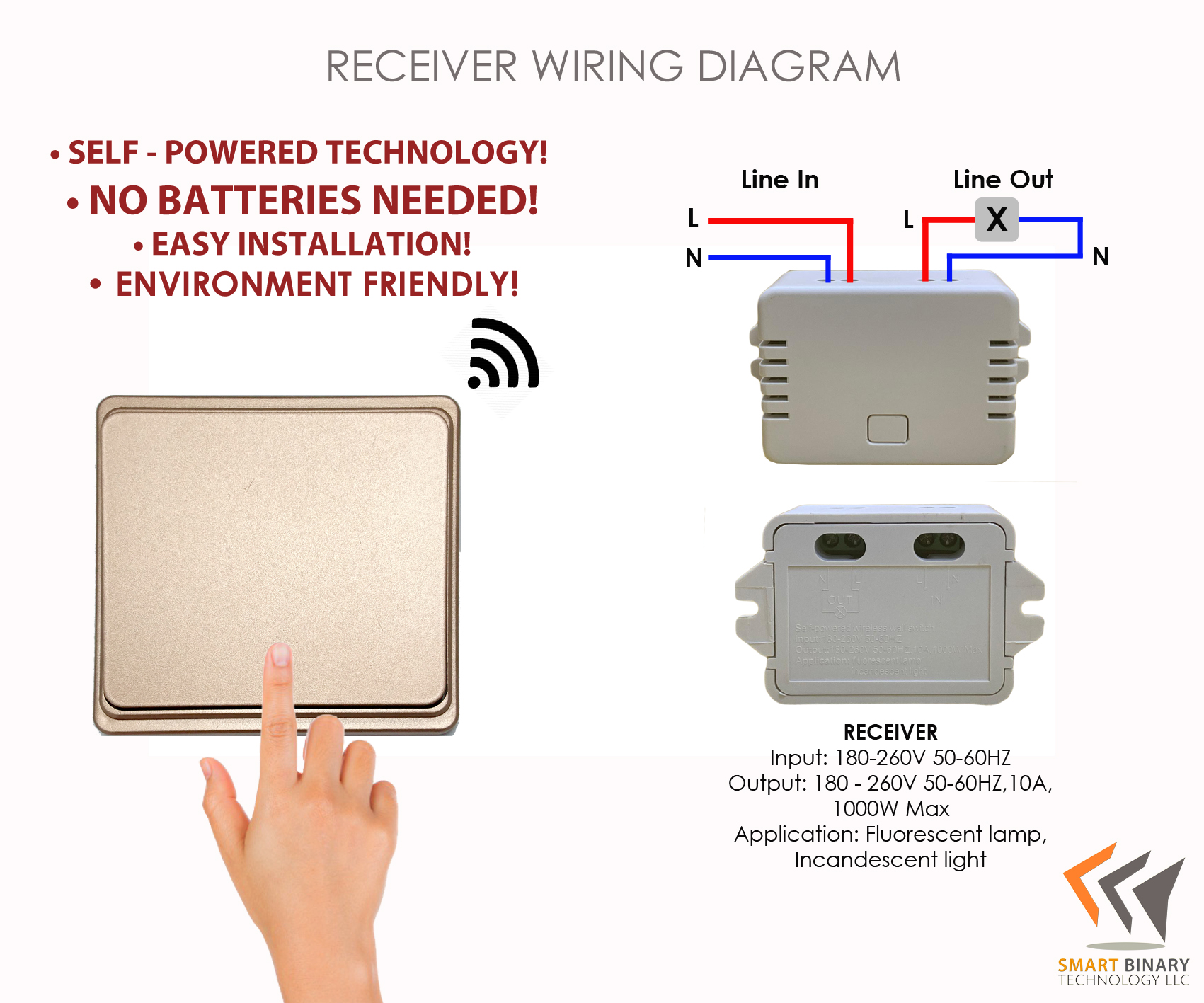 Wireless Switch is a wireless radio transmitter without being connected with any control circuit or battery, which plays its role by matching with a wireless receiver. It can control the receiver, therefore it can remote-control the load (lights, fan, etc.) connected with the receiver.